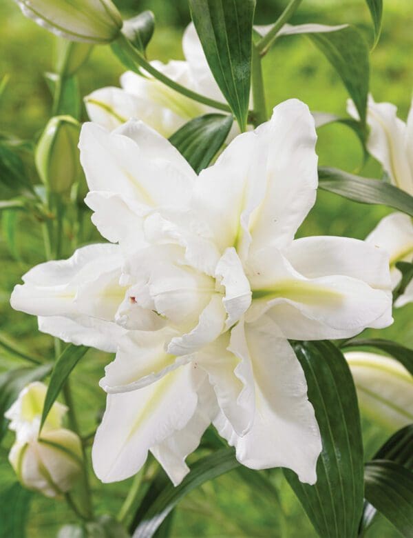 I am excited to offer ‘Bowl of Beauty’ Double Blast Oriental Lily. The large soft fragrance of these will capture the pureness and softness of the seasons joy. With large white multiple tepals that gracefully and slowly open in the dawn of each new day, they will delight you. They almost appear as a white rose with unfolding beauty. The popularity of this lily division as made many of the double blast collections that I have to offer, my best seller. Unique in the gardens and jaw dropping within floral design. These will certainly turn all heads when glancing at your Bowl of Beauties………