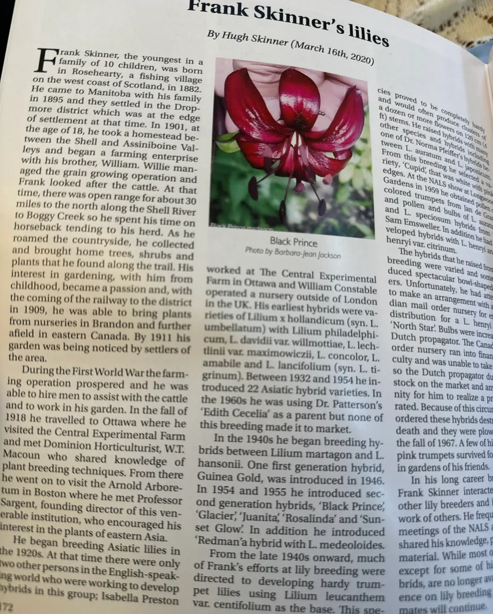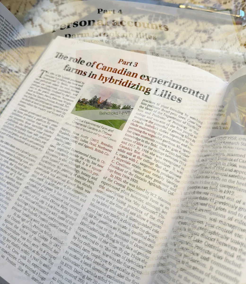 The historical side of this reference is priceless, all contained within a single volume for quick easy access. The ‘gist’ of the book, is as it states, a reference of all the amazing Lilium that the Canadian Hybridizers have introduced, OR NOT. The description of each, precisely detailed by category, year, and hybridizer. I appreciate that it is alphabetize so i can flip right to the name and find what I am looking for. This book also gives us extremely valuable historical research of programs that were and are conducted on Farming Horticultural Research Institutes within the Provinces. Let’s not forget all the photos within the pages. Hundreds of beautifully arranged photos from people all around the world for us to have a look at Canadians beauties. Yes, it’s only a picture, but it says a thousand words. History is invaluable, our foundation of future yet to come. Hypothetically noting possibilities rather than reality, at least for the time being. I value Canadian Lilies and their hybridizers for the contributions and research that they have given world-wide. I will always promote any that contribute to the lilies and their species. They are my tribe…. LOL