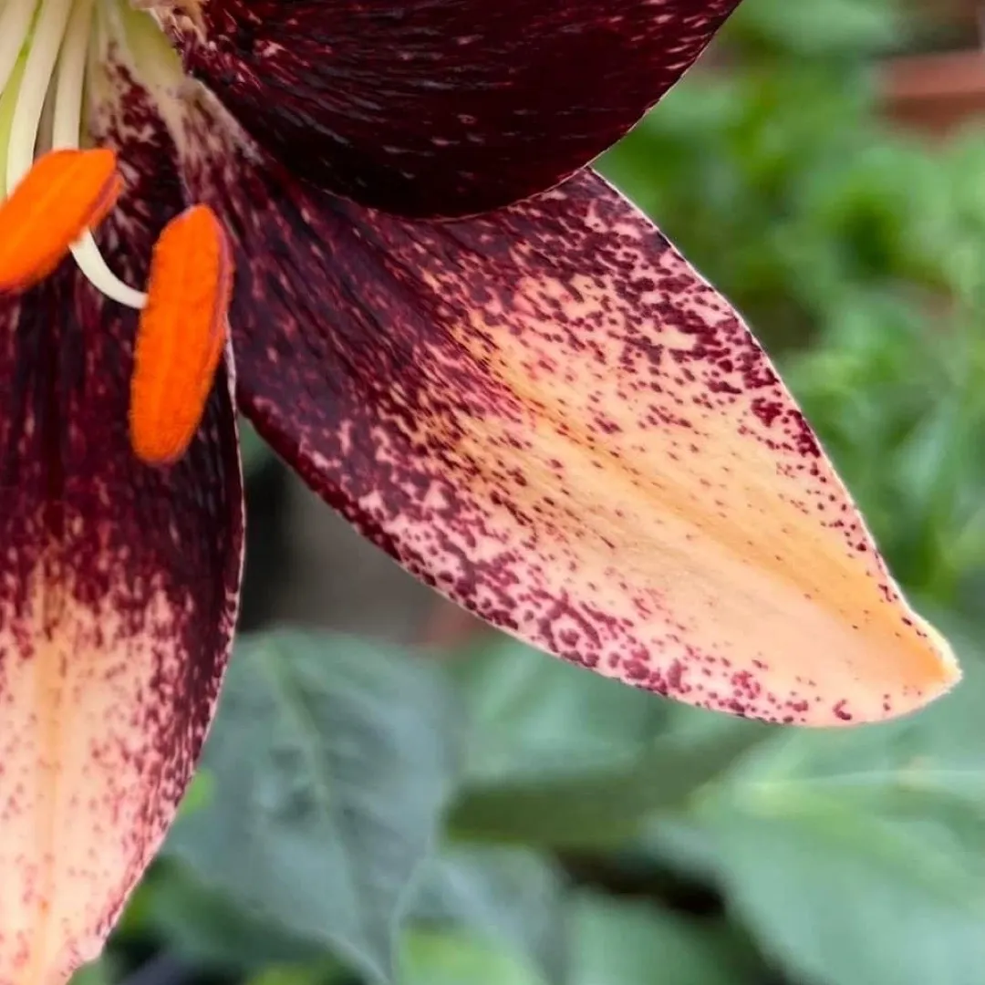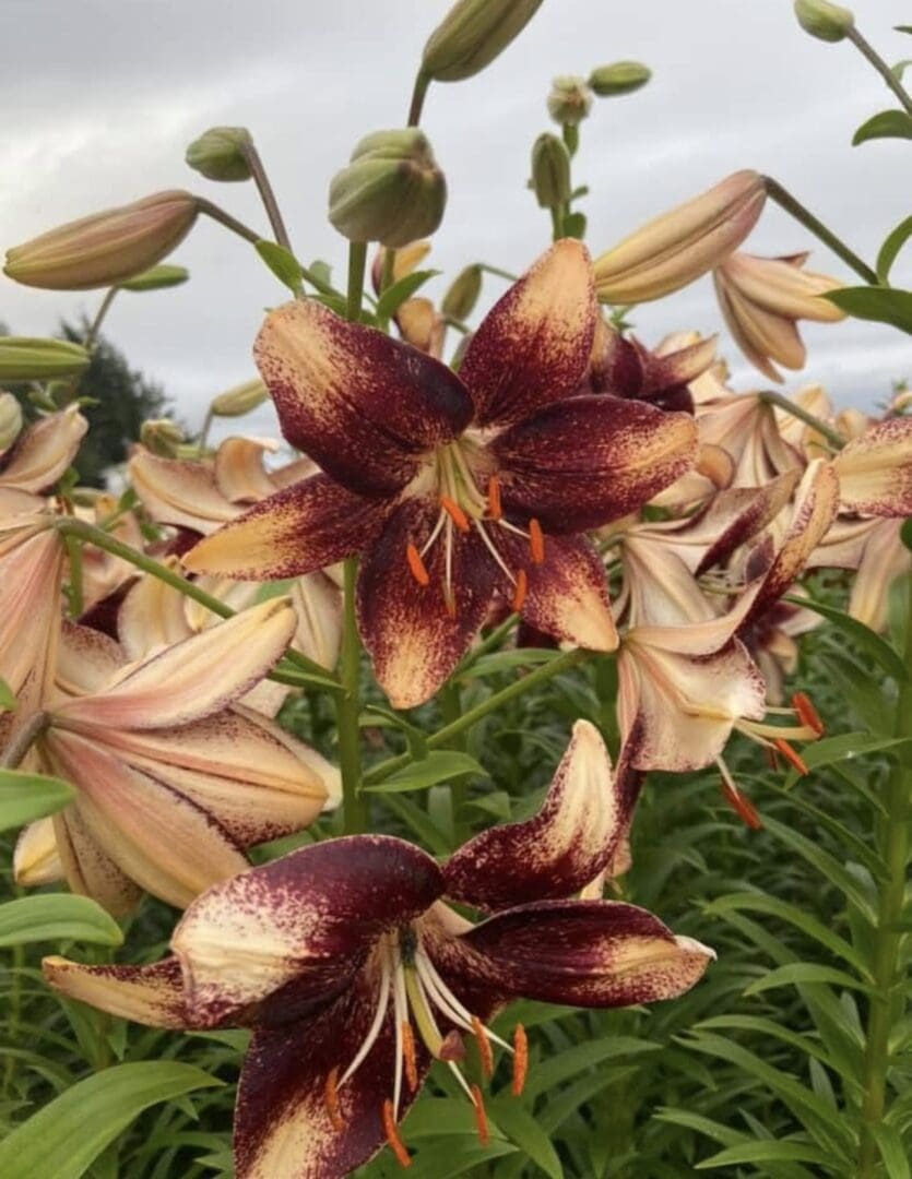 Here is another of the “EVENT SERIES” Asiatic with such defined spattered deep maroon speckling. This is what I call a looker as well as a talker— I turn my head in disbelief as the attraction appeals to me. I want more of these so I scaled them, and now have many always blooming with in the gardens. A few years ago I saw this flower in a floral design at the NSLS, where it won many awards in 2021. The contrast of the pumpkin orange pollen makes this just pop in the gardens and in floral design. Companion to Stracciatella and Strawberry Event series. ( not available this season ) THESE ARE SO UNIQUE AND SO DIFFERENT— People have knocked on the doors asking what these were…
