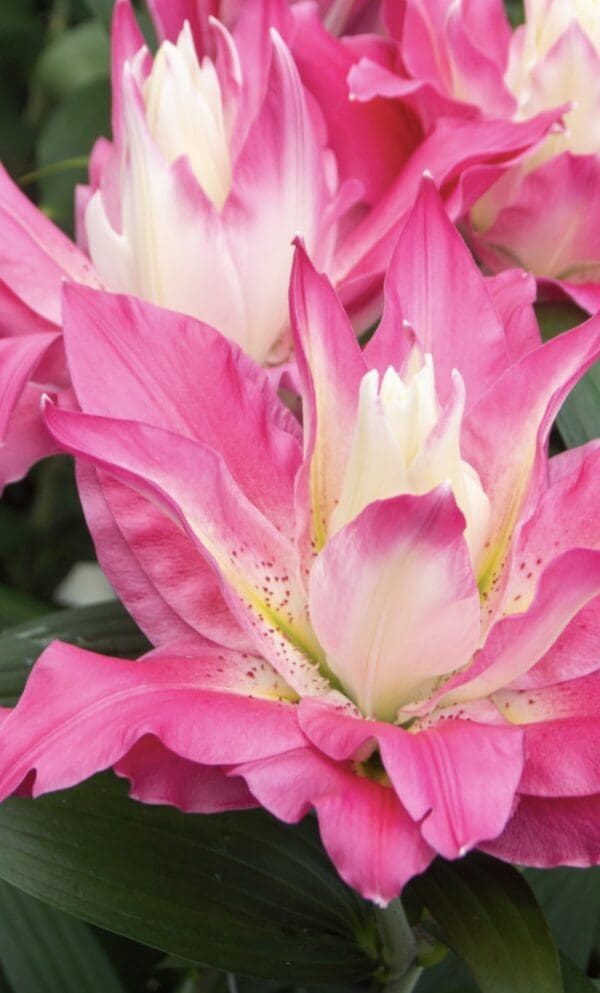 ‘Dreamline’ Double Blast Oriental Hybrid is another New Oriental that Hartle-Gilman Gardens is offering this season. Fully loaded with color and fragrance, this ruffled delight will have you dreaming for more than just one. These are fantastic in garden containers that linger by your entryway. Eye appealing and truly a desire for anyone that enters,  as it awakens your visual senses of a tropical paradise. Softer pink hues that slowly unfold over the days as it revels a huge bloom. It certainly will have start of chatter in conversation of a must have sensation.