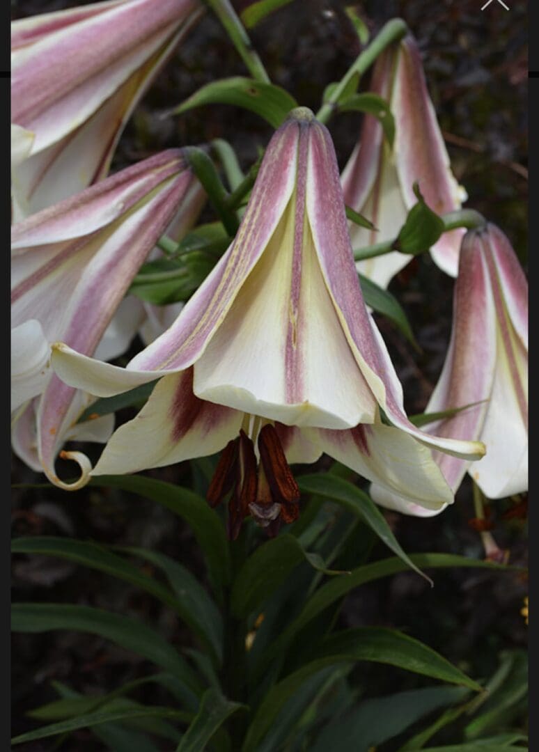 Three way cross is a LOT CROSS.  Longiflorium, Oriental & Trumpet.  ( 02268 x Easter Morn x Northern Dazzle )   Easter Dazzle will bedazzle you for many season to come with the stunning display of stems that make a mass of distinction.  Such a soft creamy trumpet with a striking red burst inside– Fragrant and most unusual.   This Cross has not been register yet  ( Still watching and evaluating )   Vlll c   pre 2019  Ronald,W.G. ‘Easter Morn’ x ‘Northern Dazzle’ Soft