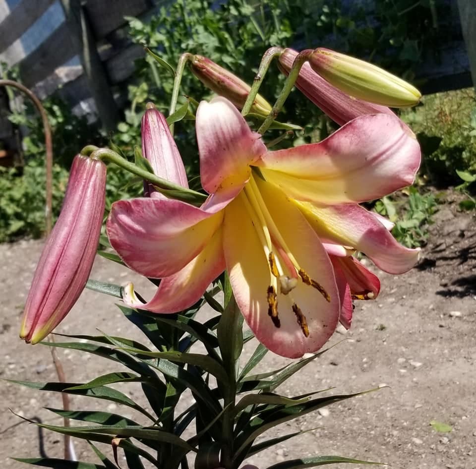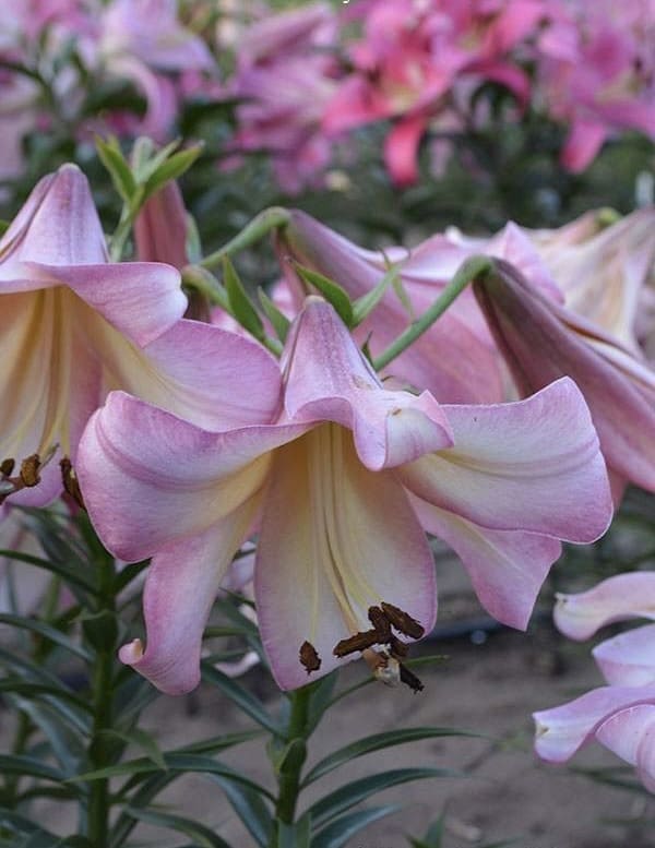 ‘Evening Glow’  is a new addition to the website this season. A late entry—-This is a complex interdivisional and child to ‘Northern Carillon.’  This large trumpet bloom that is an Orienpet,  will have you in awe when it blooms within your gardens. The unique beauty that ‘Evening Glow’ offers is that the bloom opens with a stunning pink reflex of curls and fragrance. (something we don’t see often.)  Softly centered is the unique harmony of this glowing attraction.  Exotic & Wonderment of this desired hybrid.