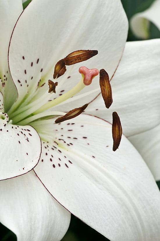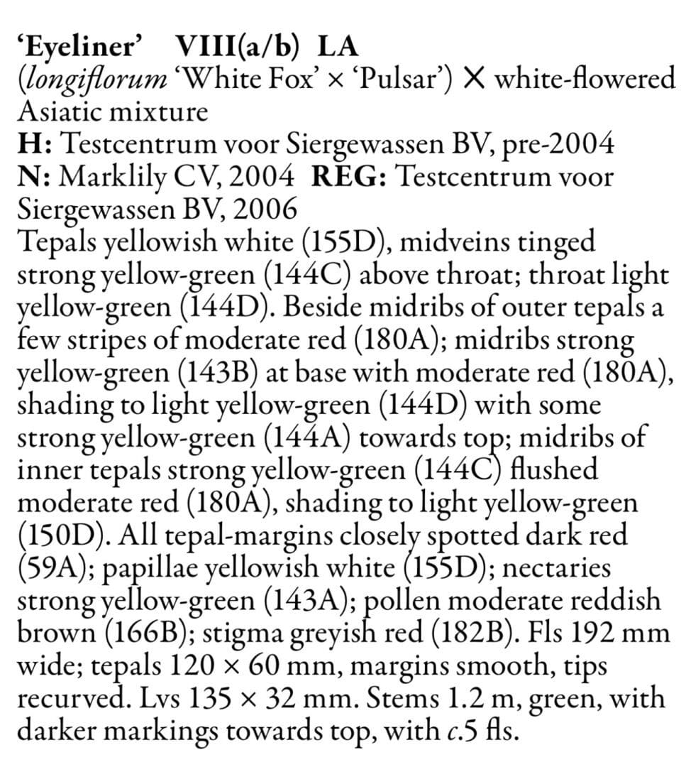 Aptly named, Lilium ‘Eyeliner’ bears milky white flowers delicately edged in purple-black liner. This is so attractive in the gardens. I find that these make a really nice arrangement with the contrasting details. adding depth and strength to designs and gardens alike. They last nicely in those fresh cut arrangements. The detail is refined with corresponding markings deep within the nectaries of this long lasting hybrid.
