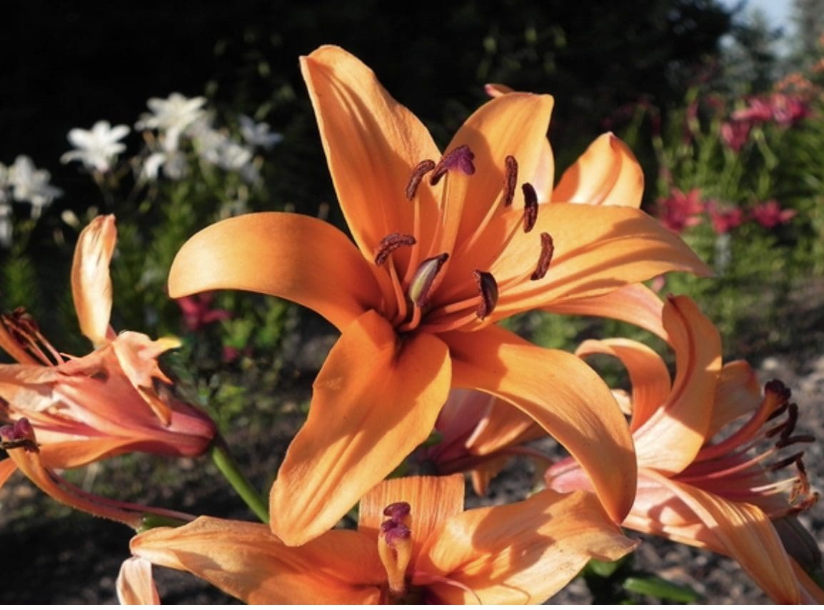 Shimmering strong orange out and up-facing flowers has flared blooms with brownish purple backs that really sets this off in the garden. You will not see this anywhere else and if you’re looking for something unique, then this is perhaps an opportunity to have a few of your very own. Triploid Lightly perfumed.
