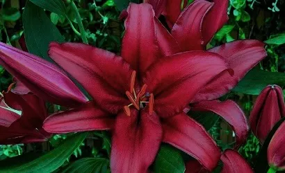 A deep dark burgundy Oriental??? Yes, this is correct and these are nice and big bulbs for you to have within your very own gardens. I have to say that when looking at these, they almost have a blue hue to the petals. I dare not forget to mention the fragrance of ‘Firebolt’ that is associated with all Oriental Lilium is as if I were on a tropical island of exotic fragrances of floral and heady earthy spices. . This one is a favorite of Hartle Gilman Gardens and I hope it steals your heart as it has my own.