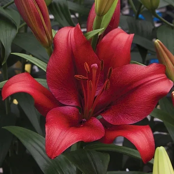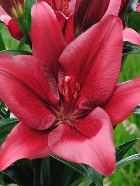 ‘Forza Red’ LA (Longiflorum x Asiatic) is a nice bold and bright lilium for the gardens. This one is a real fire-cracker of display during the holidays and picnics over the 4th. I have it mingles with daisies and lupine for the refined finesse in the gardens and in the in-door arrangements