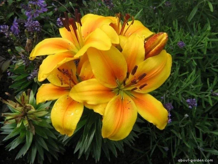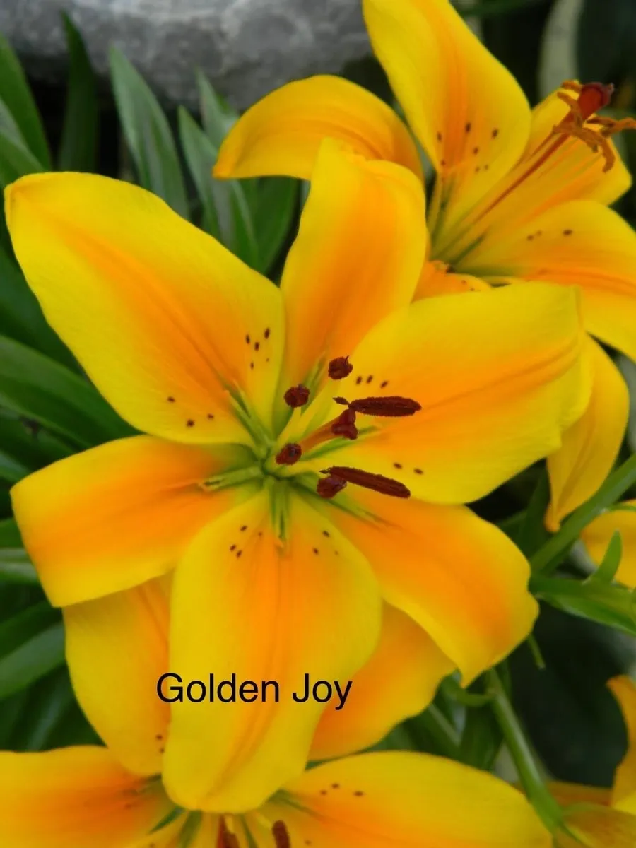 Golden Joy is a dwarf pot lilium that has had spectacular performance in my gardens. I have been know to plant several of the different divisions of lilium within the entryway pots for growing colors all summer. The ‘joy’ series is one that works amazing in the entryway display. They were breed for strength, as well as for their abundance of buds for long lasting seasonal color. At the end of the season, I toss them into the gardens for next year blossoms. Small bulbs are the joy series but the performance in unyielding