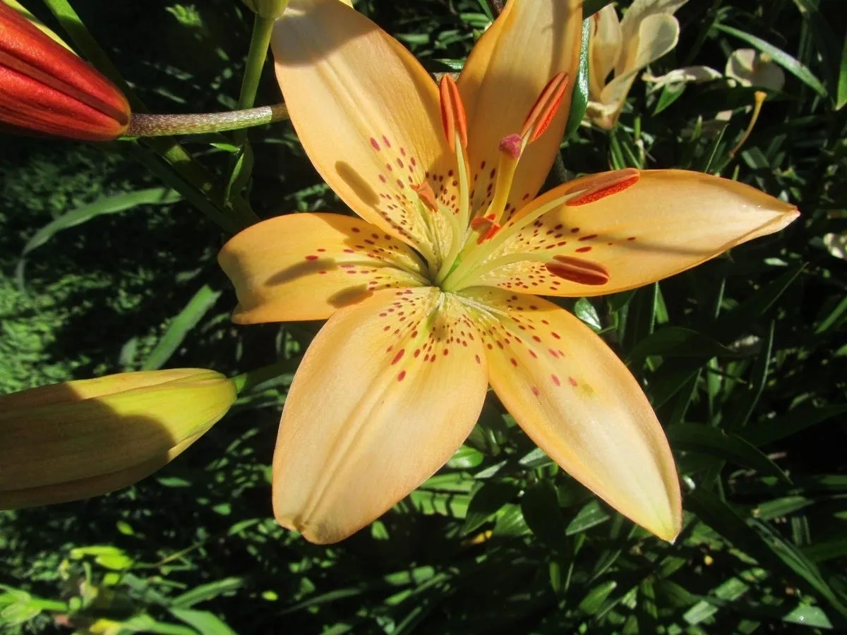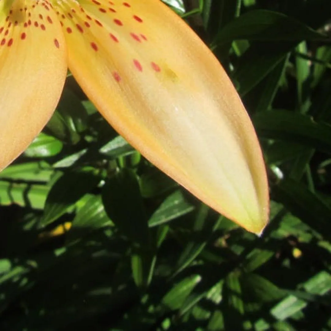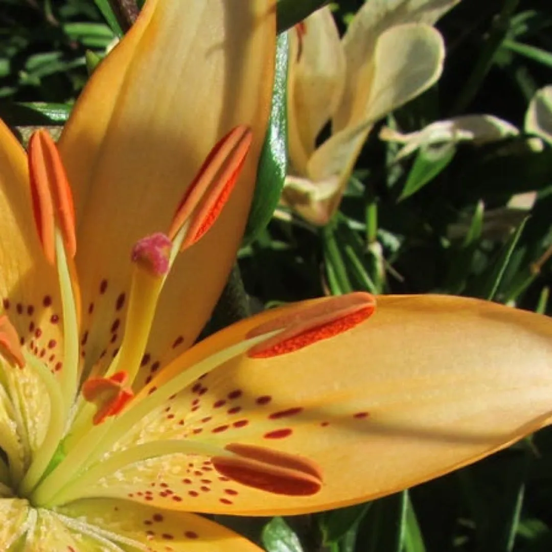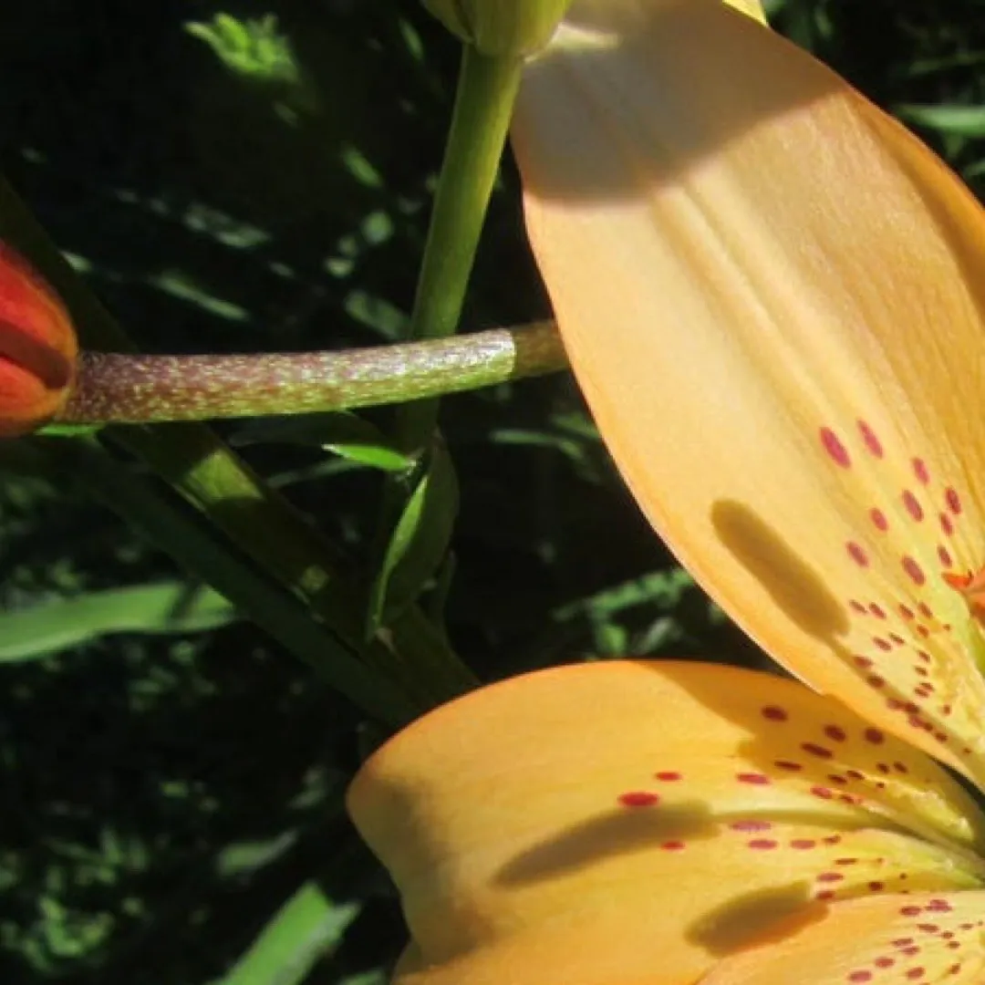 Parentage unknown. no longer in cultivation Starts out blush, changing to a soft peach R: D. Putland (1990), G: Hillcrest Harmony Flowers (1992), N: Hillcrest Harmony Flowers (1995), I: Hillcrest Harmony Flowers (2005), REG: D. Putland (2005) Inside strong orange (25B) changing to pale orange- yellow (24D) in apical half of tepals; outside light orange- yellow (25D), midribs of inner tepals overlaid with green, midribs of outer tepals brilliant orange (29C); spots elongated, dark red (59A) on basal third of each tepal; nectaries green; pollen vivid reddish orange (32A); stigma strong red . (Named after the raiser’s daughter.)