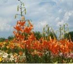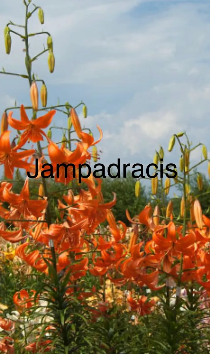 Jampadracis ( Jamboree ) Diploid is another pendulum turk’s cap shaped blossom. These are the brightest of a melon orange and are arrange on tall slender inflorescence.