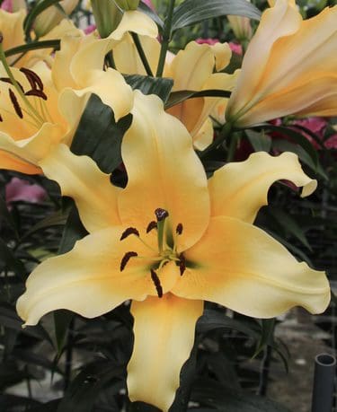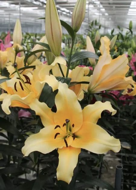 New at Hartle-Gilman Gardens, I am please to be able to offer this melon, peachy fragrant lilium for your very own gardens. This is strong and a little bit taller than the asiatic lilies that are about 3 feet tall This OT ( ORIENTAL-TRUMPET ) that do extremely well here in the Midwest climate and can reach 4-5 feet once established within the display beds. They make a superb visual with vertical focal points. The unique color of sunset-sand-butterscotch-peach sorbet, has me over the moon — I hope to grow these out and submit these for the North American Lily Society 2026 Lily Show… So for those that do grow these, Please send photos so that I can ask permission to use your photo with limelighting this stunning hybrid. 8.00 each