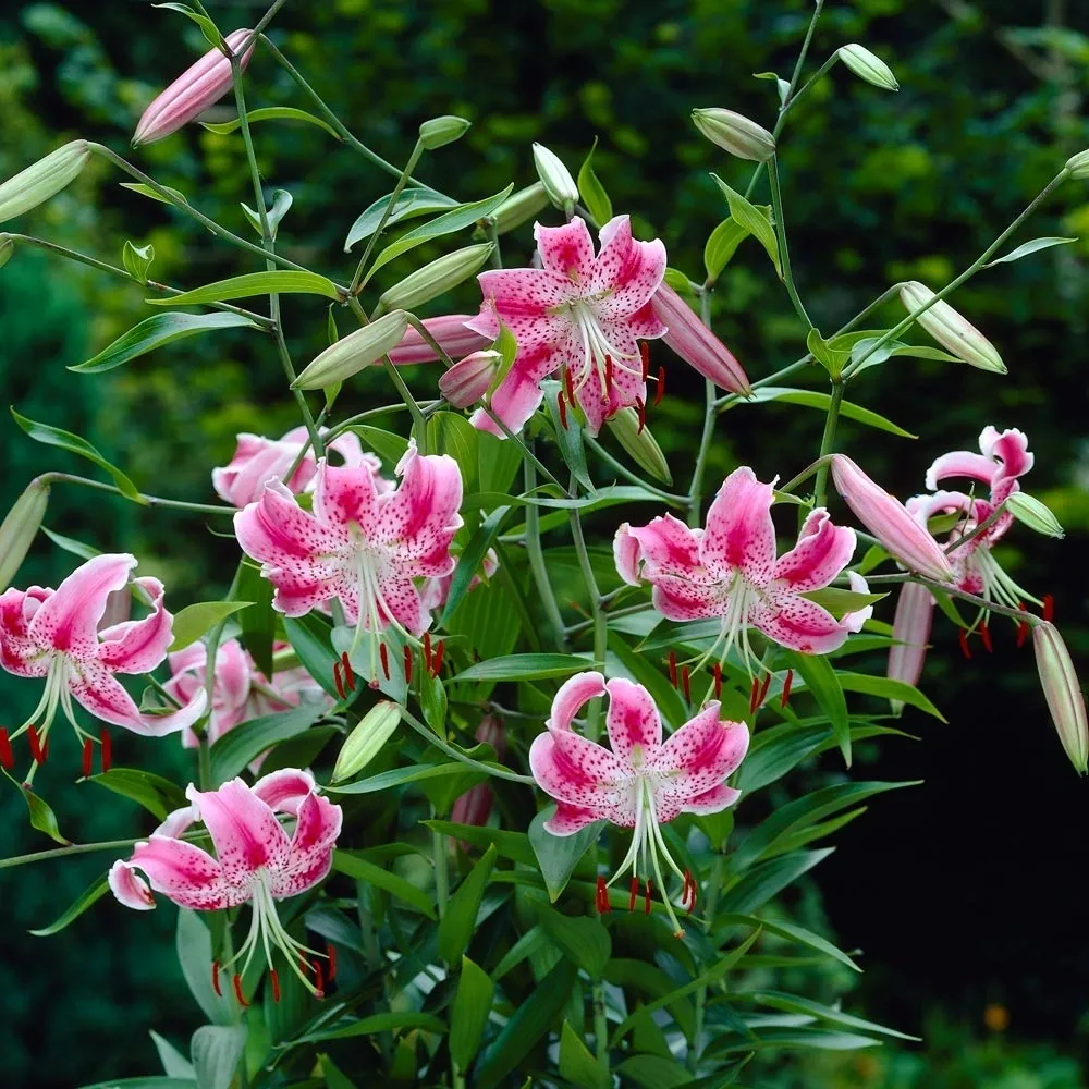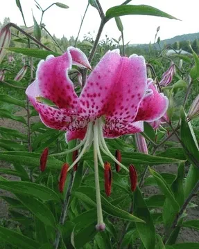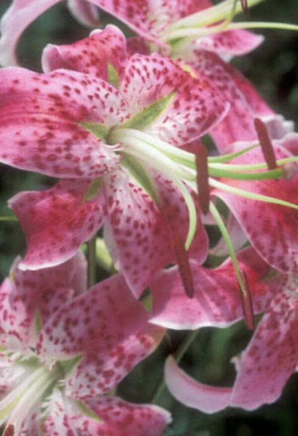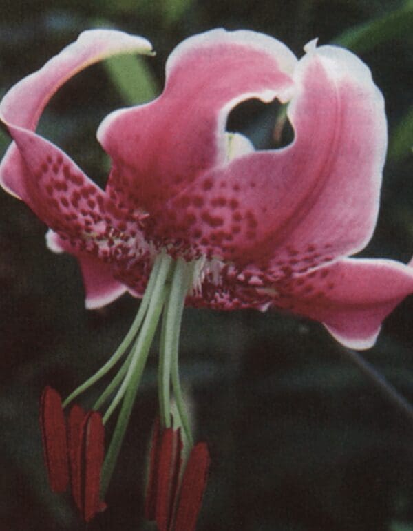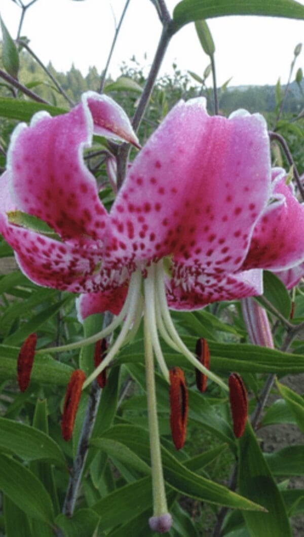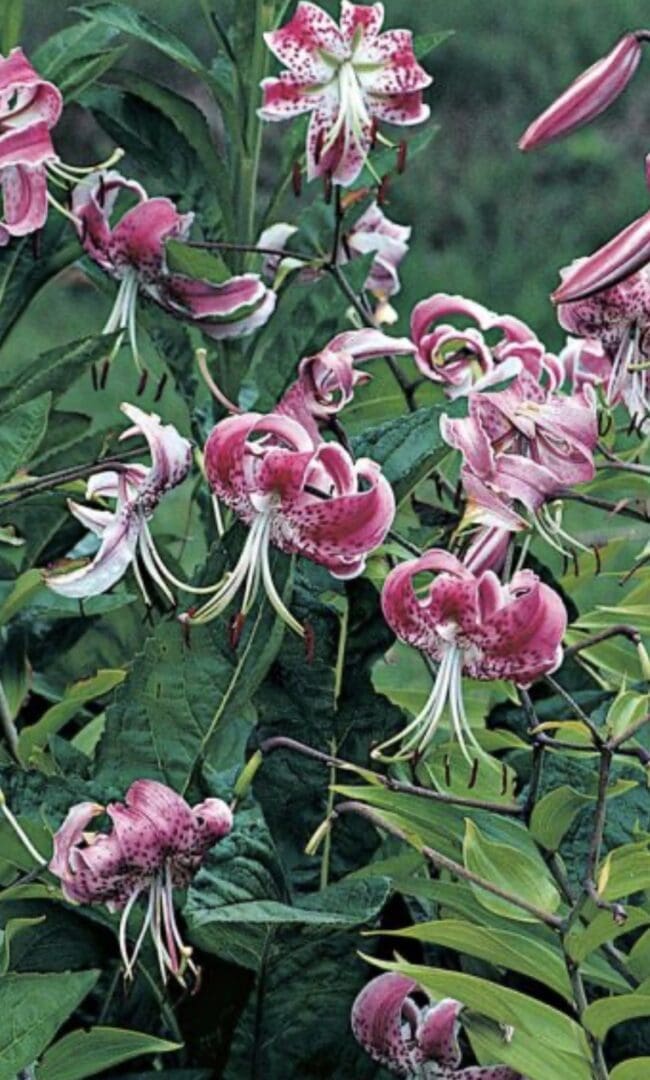 Introduced from Japan; Ils. Koshikijima. A strong and sturdy selection of the species lily Speciosum var Rubrum due to well adapted growing habits was selected, Thus, named ‘Uchida.’ The elegantly recurved, pink-and-white petals with darker spots. Lilium speciosum ‘Uchida’ grows to 4′ tall and perfumes the late summer garden with a light, spicy fragrance. I love this species with its splendor of truly florescent pink blooms towards the end of the season. I actually have paired it with Flore Pleno, another species that is consider having a wild behavior. Such a welcome color for this stunning species.