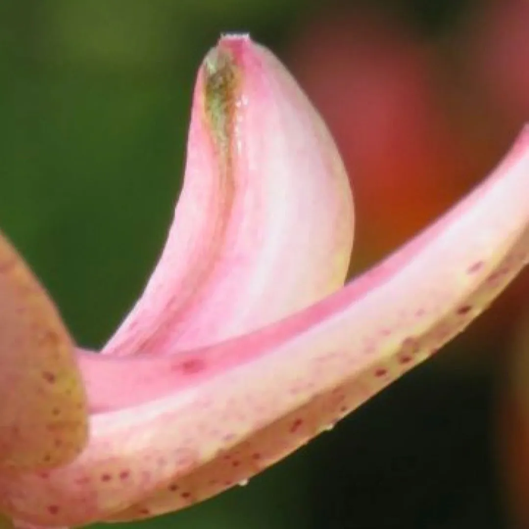 Fls yellow-ochre, flushed with magenta-pink; spots erythrite-red.