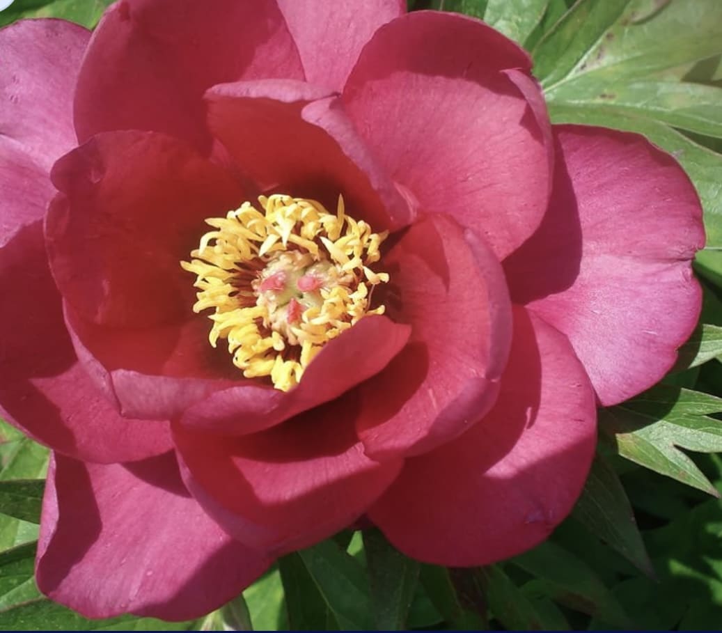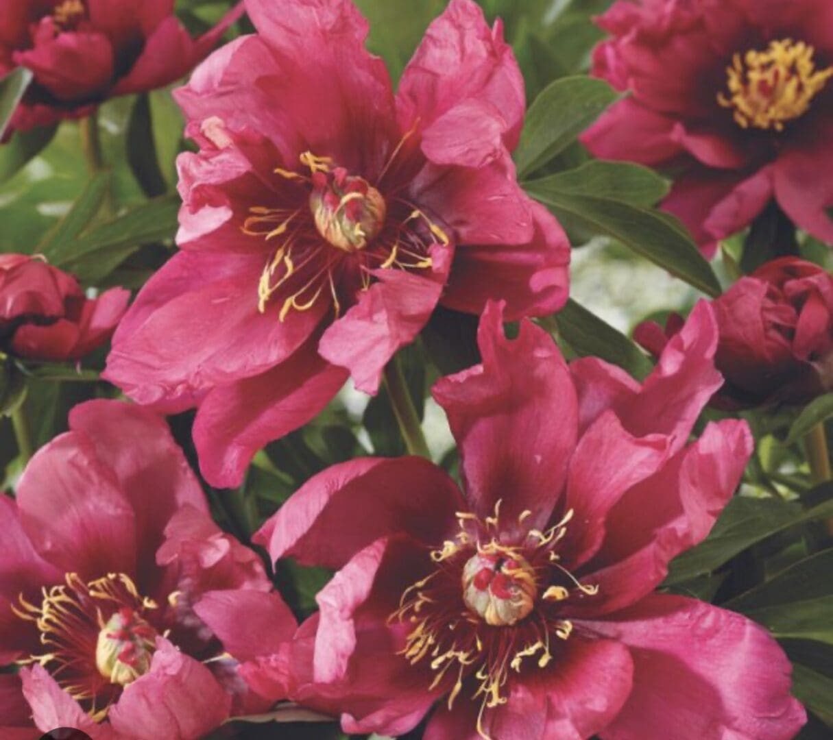 Semi Double rich raspberry- pink blooms that open 6+ inches on lush dark-green foliage that has a stunning sensation of fall interest with the color changes in its fall show. Long lasting show and extra large blooms. These are ideal for cutting for one-of-a-kind arrangements or for that focal point of a living bouquet within your won garden displays. This is a very reliable and dependable performer for three and bush peony parentage. Itoh are know to not to be hooped as they do not droop