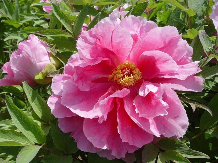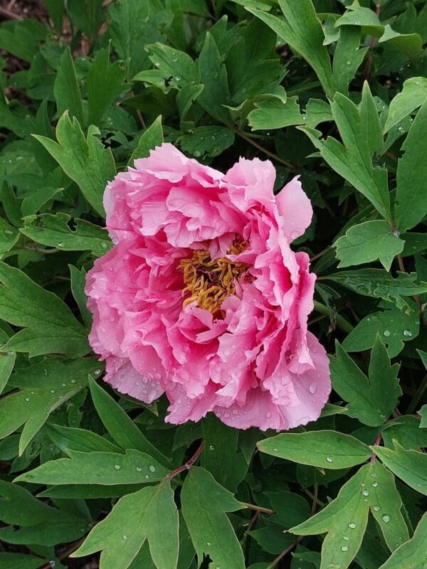 What sets the Rou Fu Rong tree peony apart from other peonies is its tree-like growth habit. It can reach a height of about 4 feet to 8 feet, making it a great addition to any garden or landscape design. The stems are sturdy and woody, providing stability to the plant as it grows. What a statement with year round beauty. Either in the Zen Gardens or at the backdrop of a woodland scape, there will be nothing quite like the beauty when the maturity and longevity relaxes to the original size.