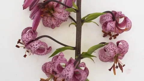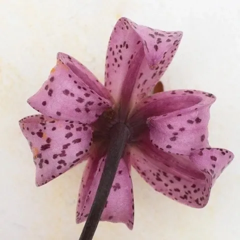 Rhian Curtis, is a lilac colored unusual martagon. The pale mauvelous slightly fragrant blossoms are unique in structure and strength. Thick outward facing flowers tempt the nearby pollinators of an ample supply of nectar and pollen. For the color of spring? These are the unique ones you want to find hanging within the garden beds 3-5 feet tall. as they age in grace over the years, their upright habit becomes more profound , Stunning among the hostas and astilbes —- all things woodland