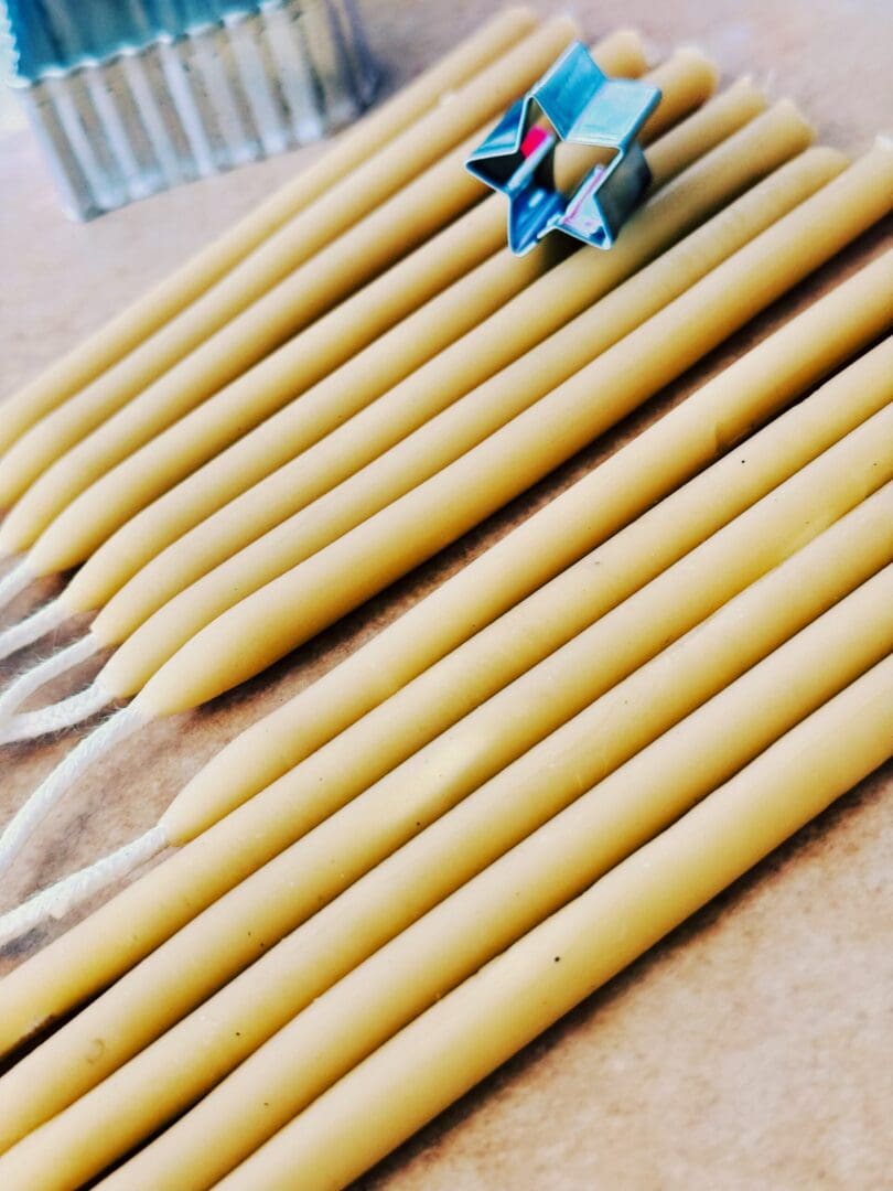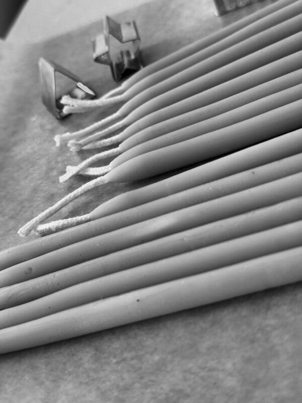 Using a cotton braid that has been saturated in holy or moon water. (The choice is yours.) Then the wicking is sun dried in the morning eastern sunshine. Once hand poured crystallisation has completed, they are blessed with a prayer of gratitude as I await curing. I then pack the gift in dark spaces to await the occasion of departure. These glims are very special as they carry the collection and work of the ladies of the hive, this wax was made especially to build comb for storing the food for the brood on Wendell Estates.