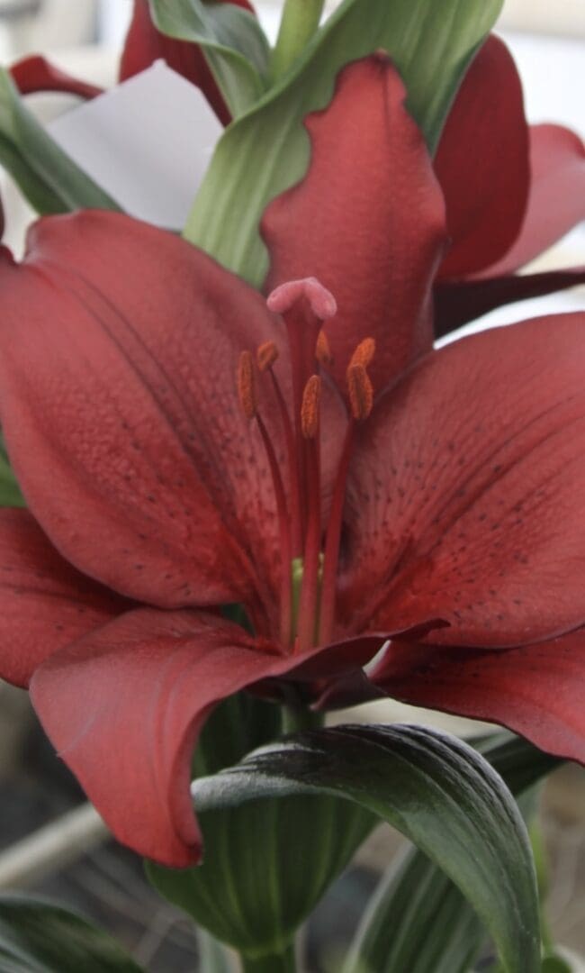 ‘San Sebastian’ LA ( Longiflorum x Asiatic ) Lily is a new and striking Lily that has become my new favorite for me here at Hartle-Gilman Gardens. The blended muted coco-raspberry hues has me gobstopped. Chocolate undertones is what I am working on with a program I am developing with some of my older varieties of Martagons. So when I saw this hybrid, I could only stand back and stare in wonderment. The way the sun captures the gentle ruffle tepals, the dancing of the blended mutated reds and chocolates had me twirling in amazement. I am attracted to the tan, browns and burnt colors of reds and oranges. I have added these to the display seasonal gardens and can’t wait for the blooming season to arrive. 7.00 or 3/18.00