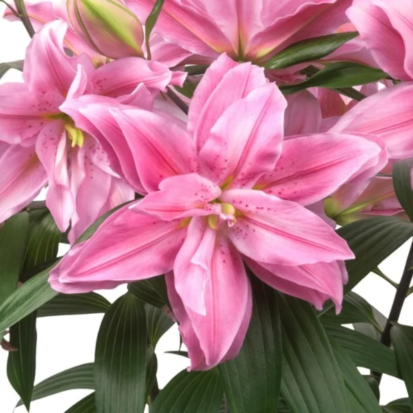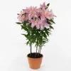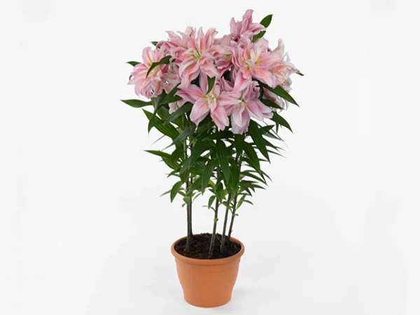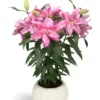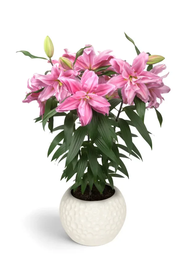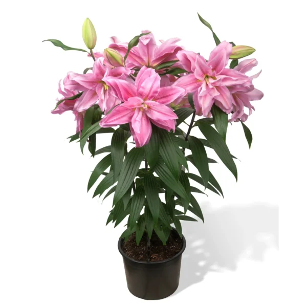 ‘Sara’ offers a specular double Roselily Oriental Lilium. With vibrant pink and a darker midrib within each tepal, it creates the illusion of a fantastic visual effect. The bloom is huge and can get a whopping 5-6 inches wide that are pollenless. ‘Sara’ is a pot lily that is considered a dwarf. Shorter varieties are a nice addition to frontal boarders in the gardens or in smaller portable pots for patio and balcony tables. The fragrance carries the signature depth as it unfolds over the course of a couple weeks, with a multiple of buds, the bloom time continues for several weeks. The flowers fade to a lovely rosy-brown vintage appeal for even more charm within the garden beds or added as focal points to the long lasting bouquets of your own creations.