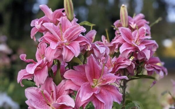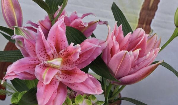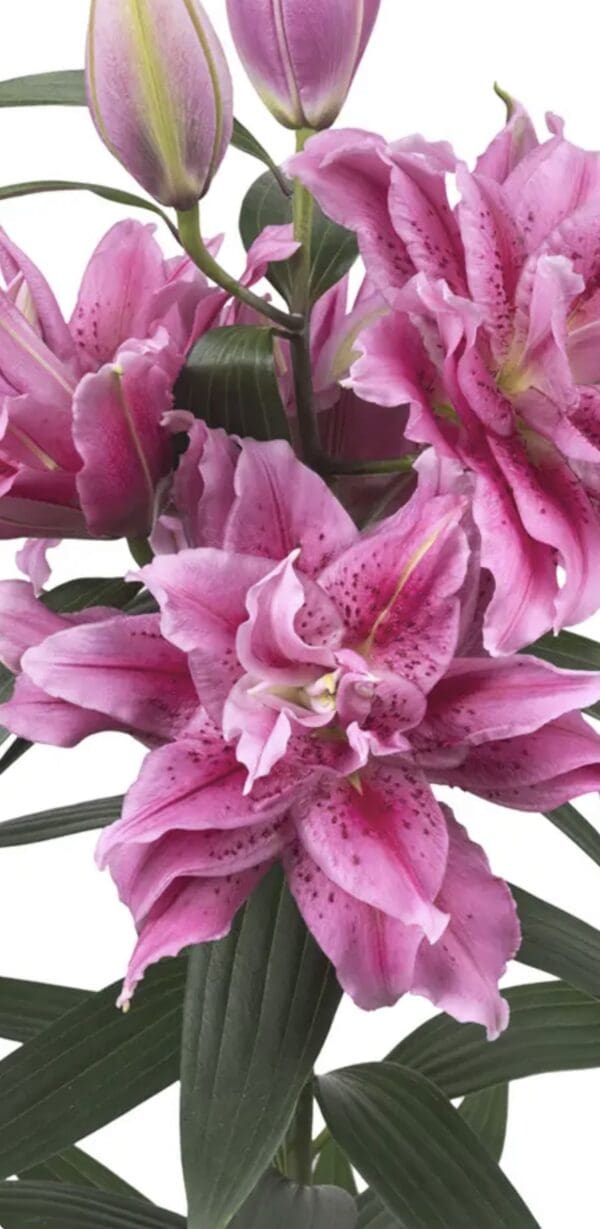 Thalissa Roselily is an Oriental DoubleBlast Lily. This attractive peppermint pink fragrant bloom will delight you. The large buds will blast over a few days as it opens slowly to it’s entirety. The unique pattern of stripes and deep freckles add charm in this multi petaled bloom. Using the flowers within arrangements will provide not only texture that fills in gaps, but also an accent that will create a focal point of your creation. These truly are outrageous with class. I remember looking at it and touching the bloom was I thought it to not be real. Trust me….. It is and my-oh my— A real stunner