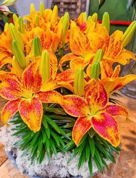 ‘Tiny Parrot’ Asiatic looks fantastic in a pot at an entryway or on a stepping stone in the gardens. This short varity burst with color and blooms, as each stem holds numerous flowers on shorter sturdy stems. These are versatile and will grow in any wee tiny garden space. They are stunning in crevasse among the rock garden landscapes. 5 bulbs for 18.00 or 4.00 each.